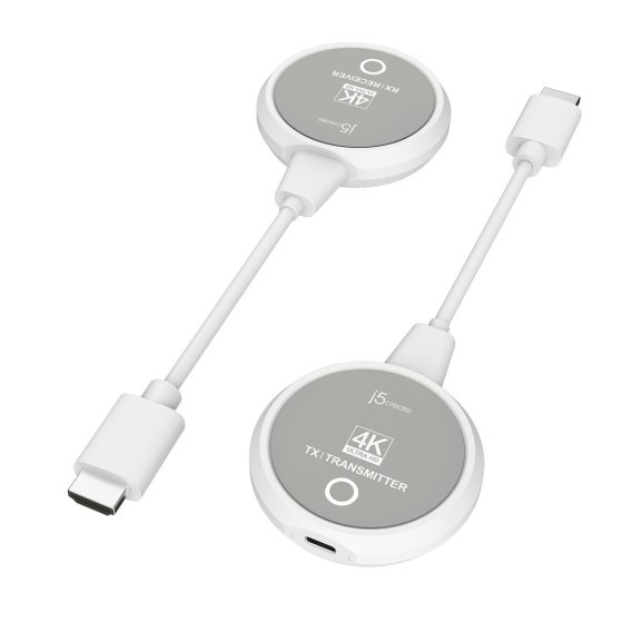 Nadajnik i odbiornik audio/video bezprzewodowy j5create ScreenCast 4K Wireless Display HDMI Extender ; kolor biały JVAW75-N