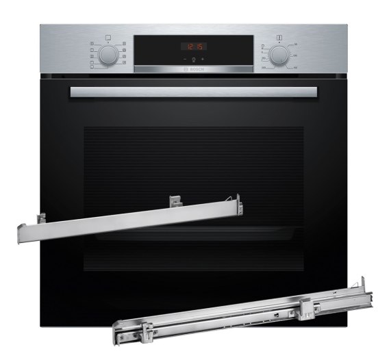 Piekarnik BOSCH HBA514BS3 + Prowadnice teleskopowe 1 poziomowe BOSCH HEZ538000